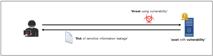 즉, 자산(asset) + 취약점(vulnerability) + 위협(threat) = 위험(risk)