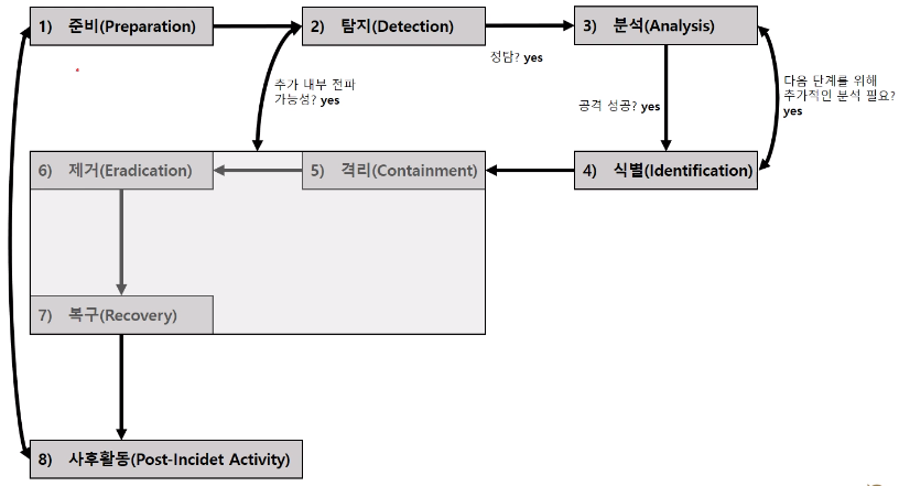 공격이 실제로 성공하지 않았으면 '탐지 단계'로 리턴하고, 공격이 실제로 성공했으면 '식별 단계'로 진행