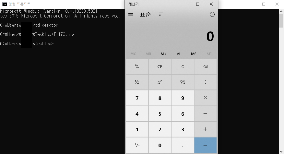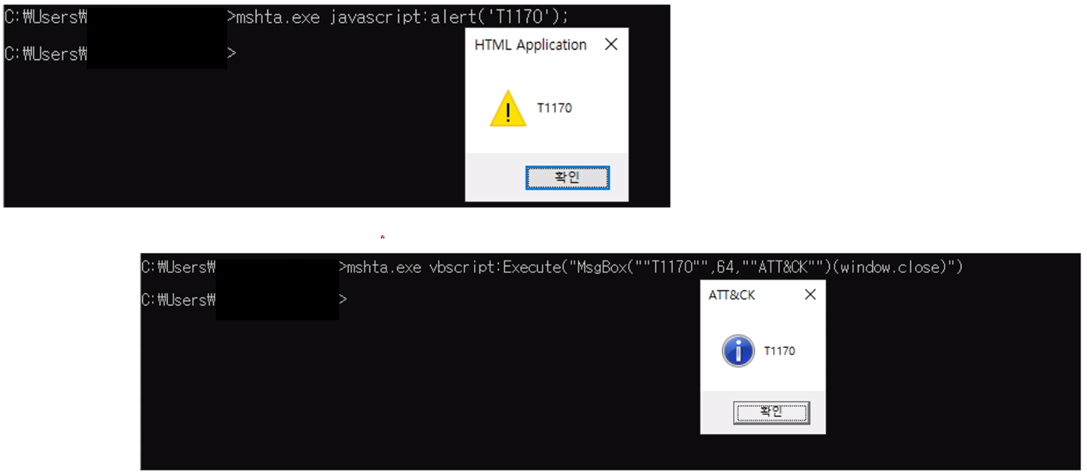 공격자는 mshta.exe를 사용하여 신뢰할 수 있는 Windows 유틸리티를 통해 악성 .hta 파일 및 Javascript 또는 VBScript 실행을 프록시 가능